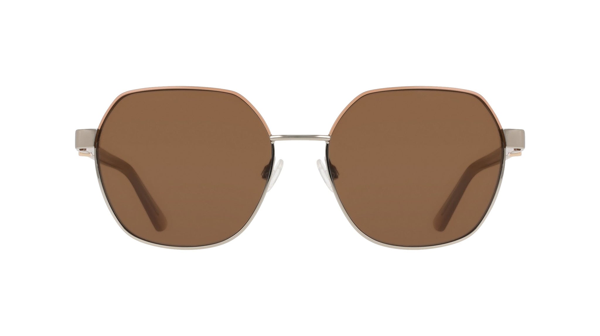 These square-frame sunglasses make a sharp first impression with their two-tone metal construction, pairing contrasting finishes across the frame and temples for a look that feels considered and modern. The oversized square silhouette sits well on a range of face shapes, offering full coverage without feeling heavy or bulky.
