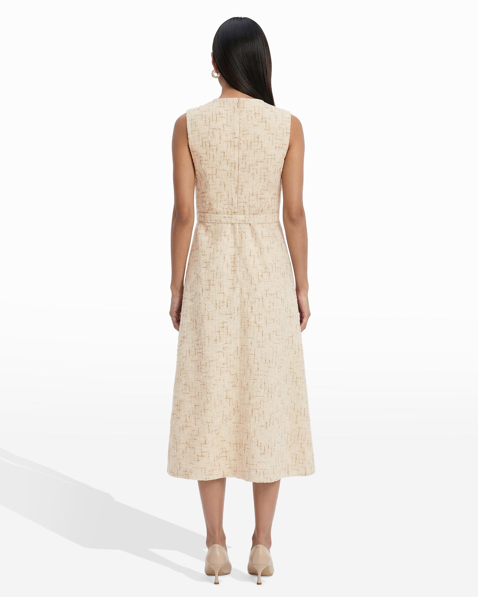 Price: $149.00Square Neck A-line Silhouette Midi length Dress with Open Back